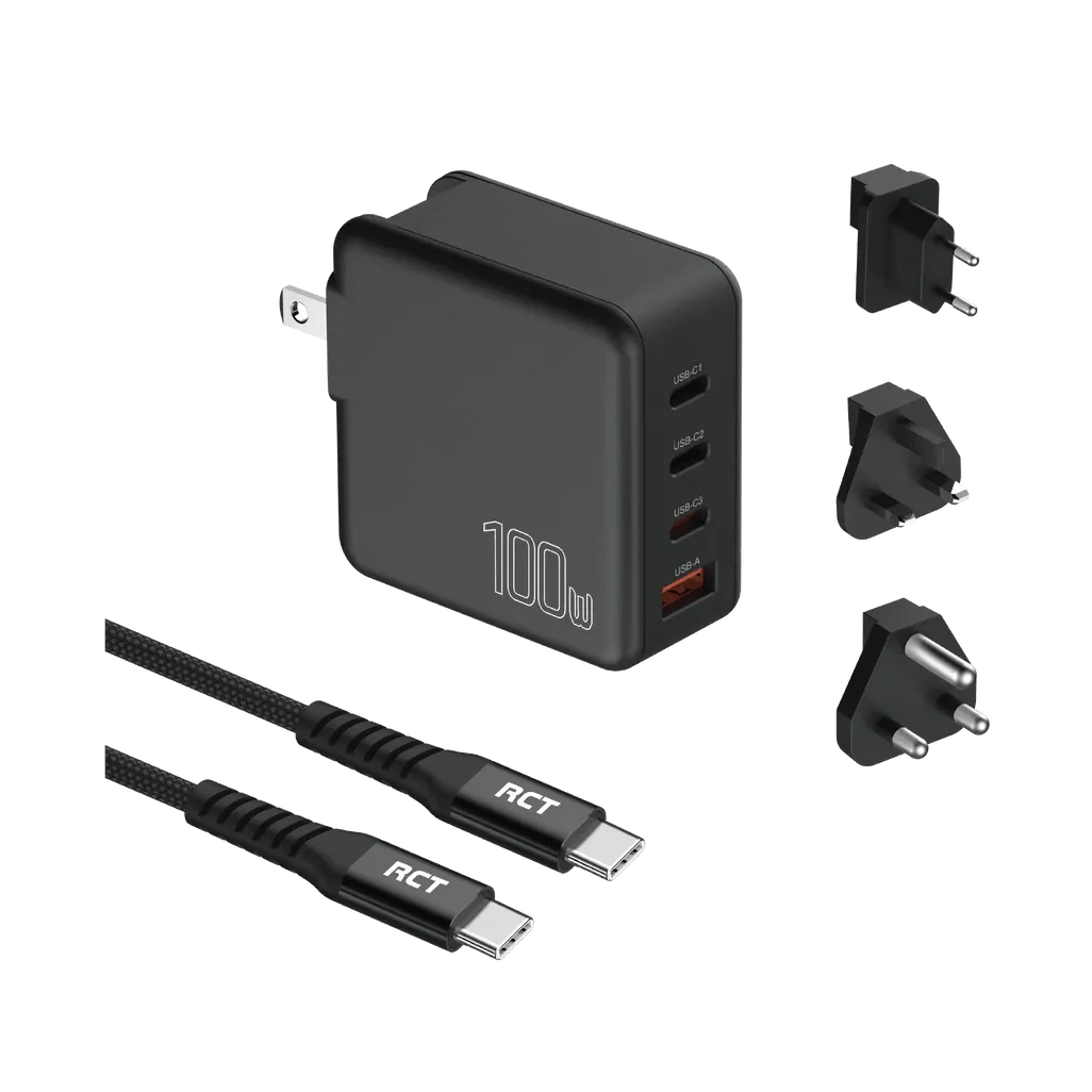 RCT 100W Charging Travel kit - Travel adaptor + (EU+UK+SA) Plug and cable
