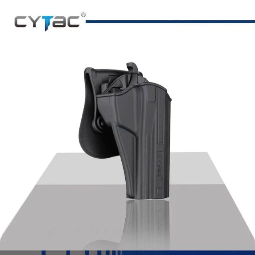 The CYTAC T-ThumbSmart Holster is designed to provide an optimal combination of security, comfort, and quick access to your firearm. Compatible with widely used pistols such as the Beretta 92, Beretta 92FS, GSG92, and Girsan Regard MC, this holster ensures a snug fit and easy concealment. Made from military-grade polymer, it offers exceptional durability and can withstand extreme operating conditions, from -30°C to 180°C. The ergonomic design allows for a natural grip and smooth draw while ensuring your weapon is automatically locked in place when reholstered. The thumb release button is discreetly placed for security, making it a safe choice for law enforcement professionals worldwide, including the French, Croatian, and Thai police.