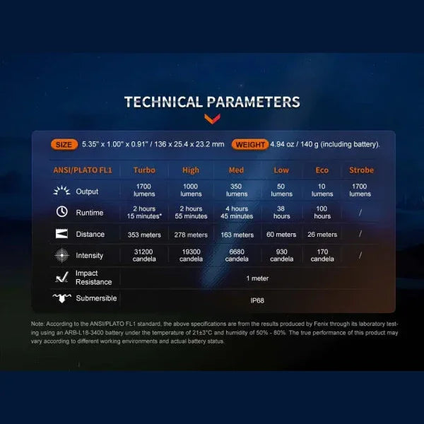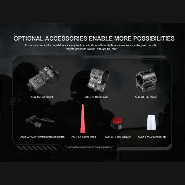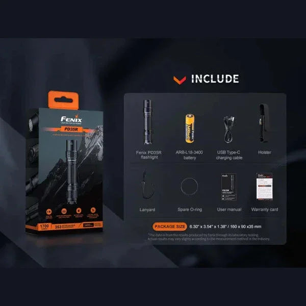 The new Fenix PD35R rechargeable flashlight is the upgraded replacement to the ever-so-popular Fenix UC35 V2.0 flashlight. Fitted with the Luminus SFT40 LED, the PD35R flashlight delivers a maximum 1700 lumens at a distance of 1158 feet (353 meters). Operation is simple with the dual tail switches. Turn the light on and off with the large tactical switch and cycle through the six lighting modes via the smaller functional switch. The in-body USB-C charging port allows you to conveniently charge the included 18650 Li-ion battery (ARB-L18-3400) whenever the side mounted battery level indicator provides notice of a low battery. Compact and built-tough, the Fenix PD35R flashlight is IP68 rated; dust proof and waterproof underwater to two meters.