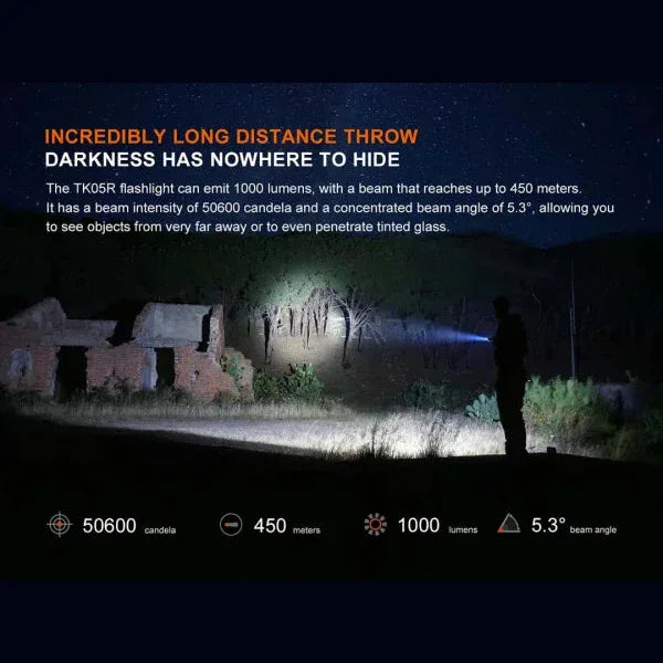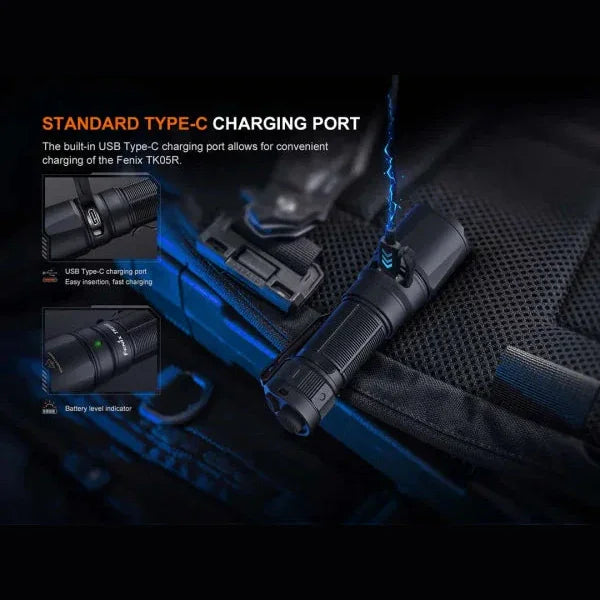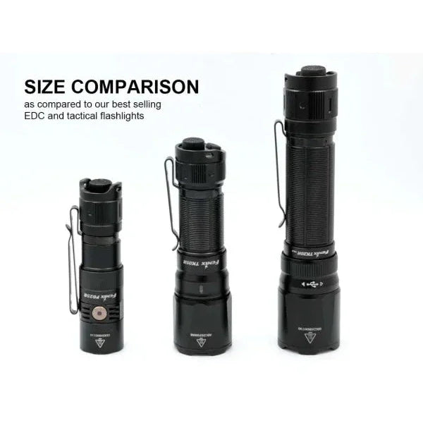 At only 4.53” long, the Fenix TK05R Tactical EDC Flashlight is almost 25% smaller than our standard tactical flashlights, which makes it a great everyday carry size. But don’t worry about sacrificing size for performance. This compact light produces an intense, concentrated beam that can throw a maximum of 1000 lumens 1476 feet—almost 500 yards. This fierce beam can even penetrate optical barriers like tinted glass. Dual tail switches operate three brightness levels and strobe. USB Type-C charging and a battery level indicator are built into the body. The flashlight is rated IP68 waterproof and dustproof, and the charging port includes inner waterproofing. An incredibly long throw in a small, compact size, makes this the one to own for both EDC and tactical use—a great backup light for law enforcement!