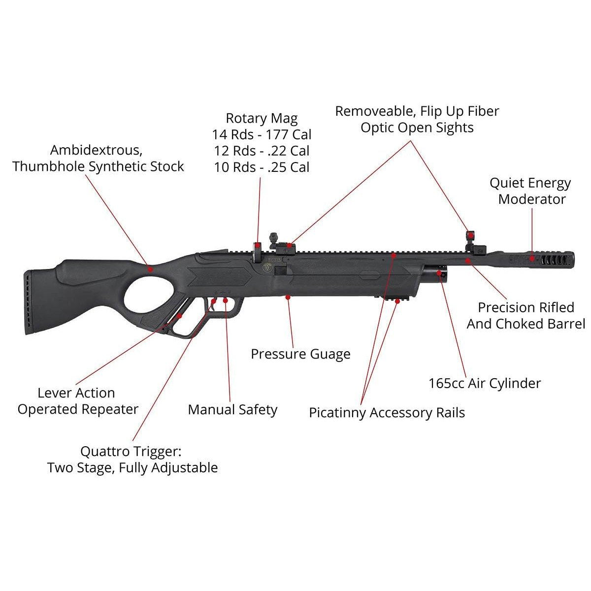 Patented anti‑knock system Prevents gas wastage if the rifle is bumped