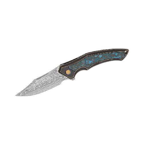 Its Black 6Al4V titanium handle, enhanced with Arctic Storm FatCarbon inlays, offers a perfect balance of strength, elegance, and ergonomics. The frame lock mechanism ensures secure handling, while the caged ceramic ball bearings provide ultra-smooth deployment. Designed for right-hand carry with a tip-up titanium pocket clip, this knife is built for convenience and performance. With only 72 pieces available, the Orpheus is a rare collector’s piece that combines exquisite craftsmanship with cutting-edge materials.