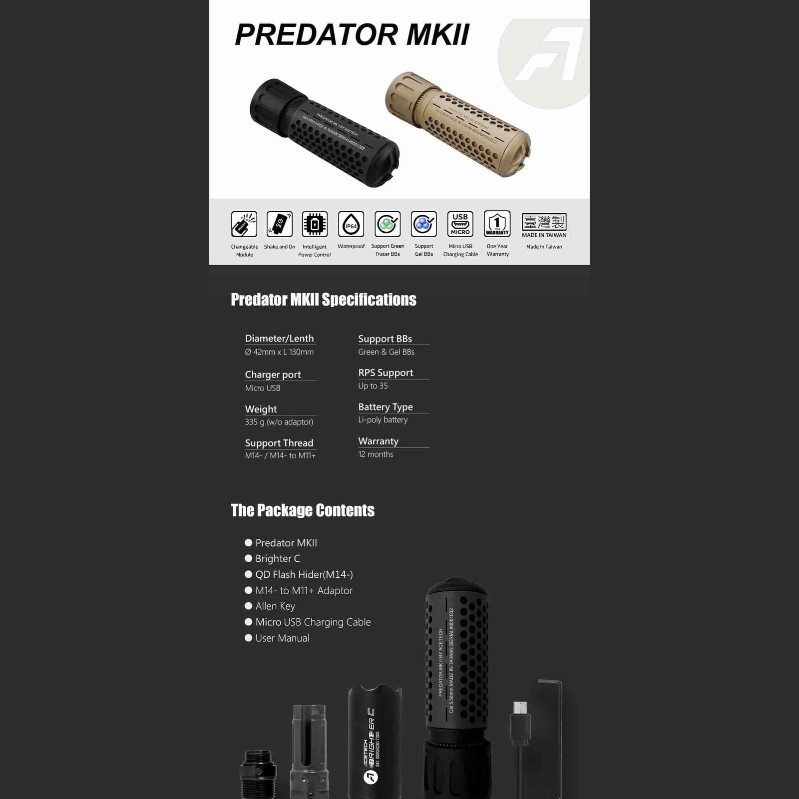 | Model | ACETECH Predator MKII Blaster MS Inside Tracer Unit |