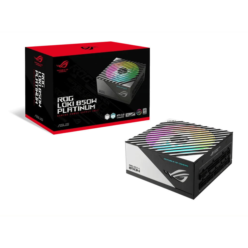 ASUS ROG Loki SFX-L 850W Platinum. Total power: 850 W, AC input voltage: 100 - 240 V, Combined power (+3.3V): 110 W. Motherboard power connector: 24-pin ATX, Cabling type: Fully-Modular. Purpose: PC, Power supply unit (PSU) form factor: SFX, 80 PLUS certification: 80 PLUS Platinum. Product colour: Black, Silver, Fan diameter: 12 cm, Number of fans: 1 fan(s). Width: 125 mm, Depth: 125 mm, Height: 63.5 mm