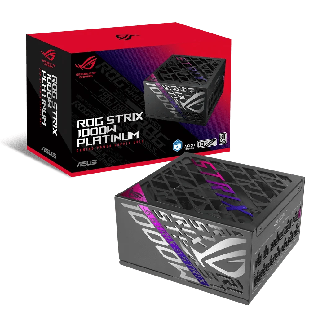 ASUS ROG STRIX-1000P-GAMING. Total power: 1000 W, AC input voltage: 100 - 240 V, Power Factor Correction (PFC) type: Active. Motherboard power connector: 20+4 pin ATX, Motherboard power cable length: 61 cm, SATA power cable length: 120,400 mm. Purpose: PC, Power supply unit (PSU) form factor: ATX, 80 PLUS certification: 80 PLUS Platinum. Product colour: Black, Silver, Cooling type: Semi-passive, Number of fans: 1 fan(s). Cables included: AC, CPU, PCIe, Peripheral (Molex), SATA