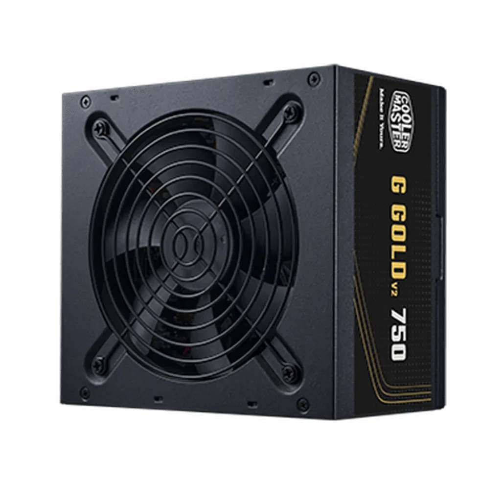 Cooler Master G Gold 750 V2. Total power: 750 W, AC input voltage: 100 - 240 V, AC input frequency: 50/60 Hz. Motherboard power connector: 24-pin ATX, Motherboard power cable length: 50 cm, SATA power cable length: 400,550,700 mm. Purpose: PC/Server, Power supply unit (PSU) form factor: ATX, 80 PLUS certification: 80 PLUS Gold. Product colour: Black, Cooling type: Active, Fan diameter: 12 cm. Width: 150 mm, Depth: 140 mm, Height: 86 mm