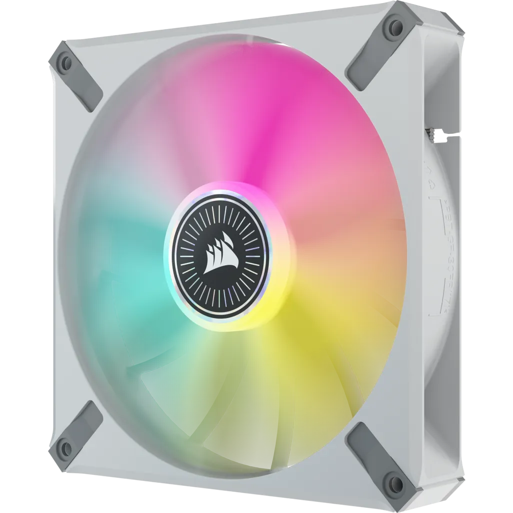 Corsair iCUE ML140 RGB ELITE. Type: Fan, Fan diameter: 14 cm, Rotational speed (min): 400 RPM, Rotational speed (max): 1600 RPM, Noise level (low speed): 10 dB, Noise level (high speed): 31.8 dB, Maximum airflow: 82.9 cfm, Minimum air pressure: 0.3 mmH2O, Maximum air pressure: 2.06 mmH2O, Bearing type: Magnetic levitation bearing. Product colour: White