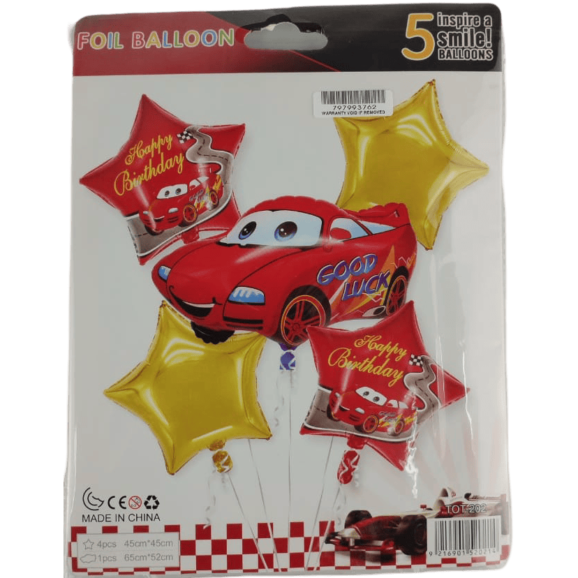 • Product Overview : Casey 5pc Red Cars Themed Birthday Balloon Set