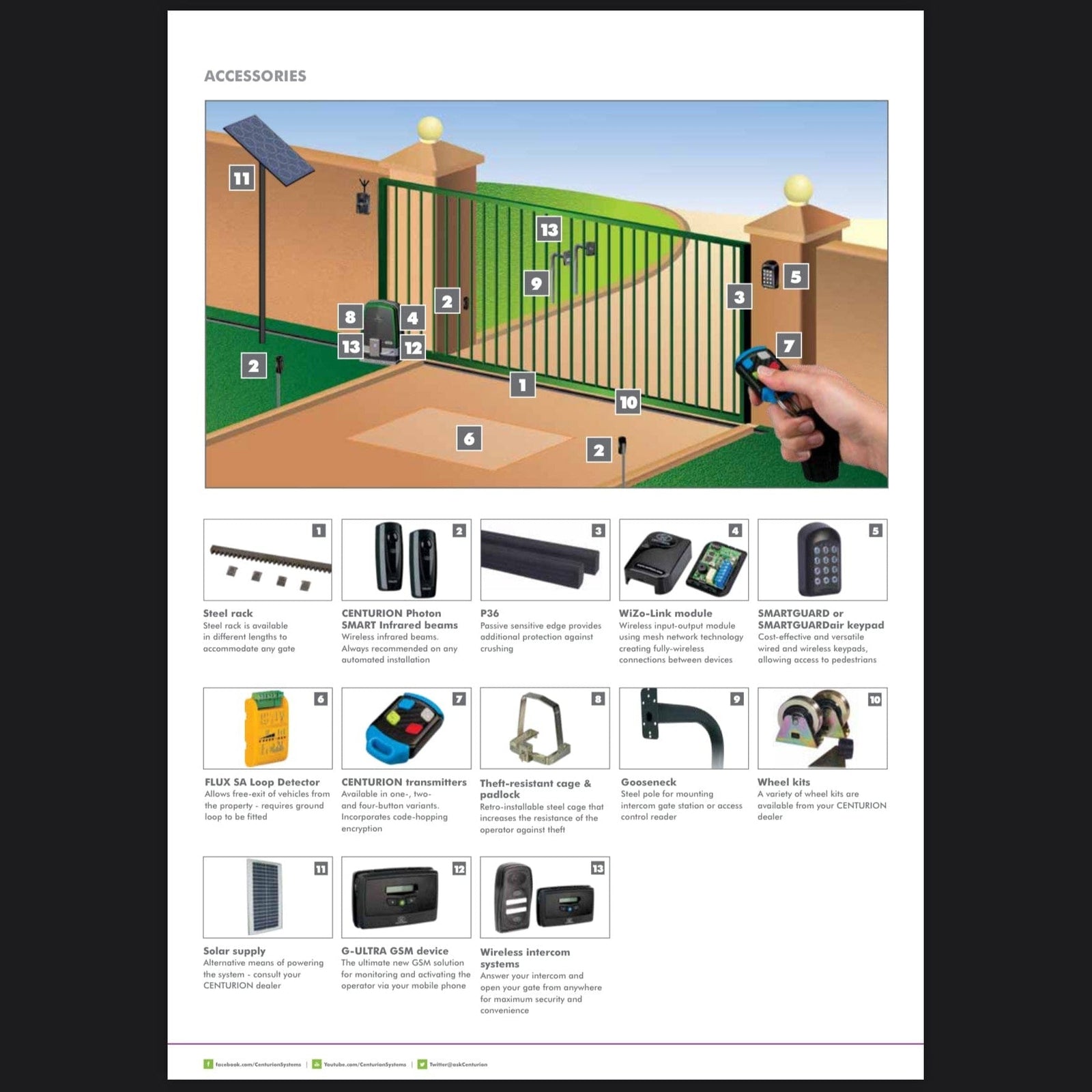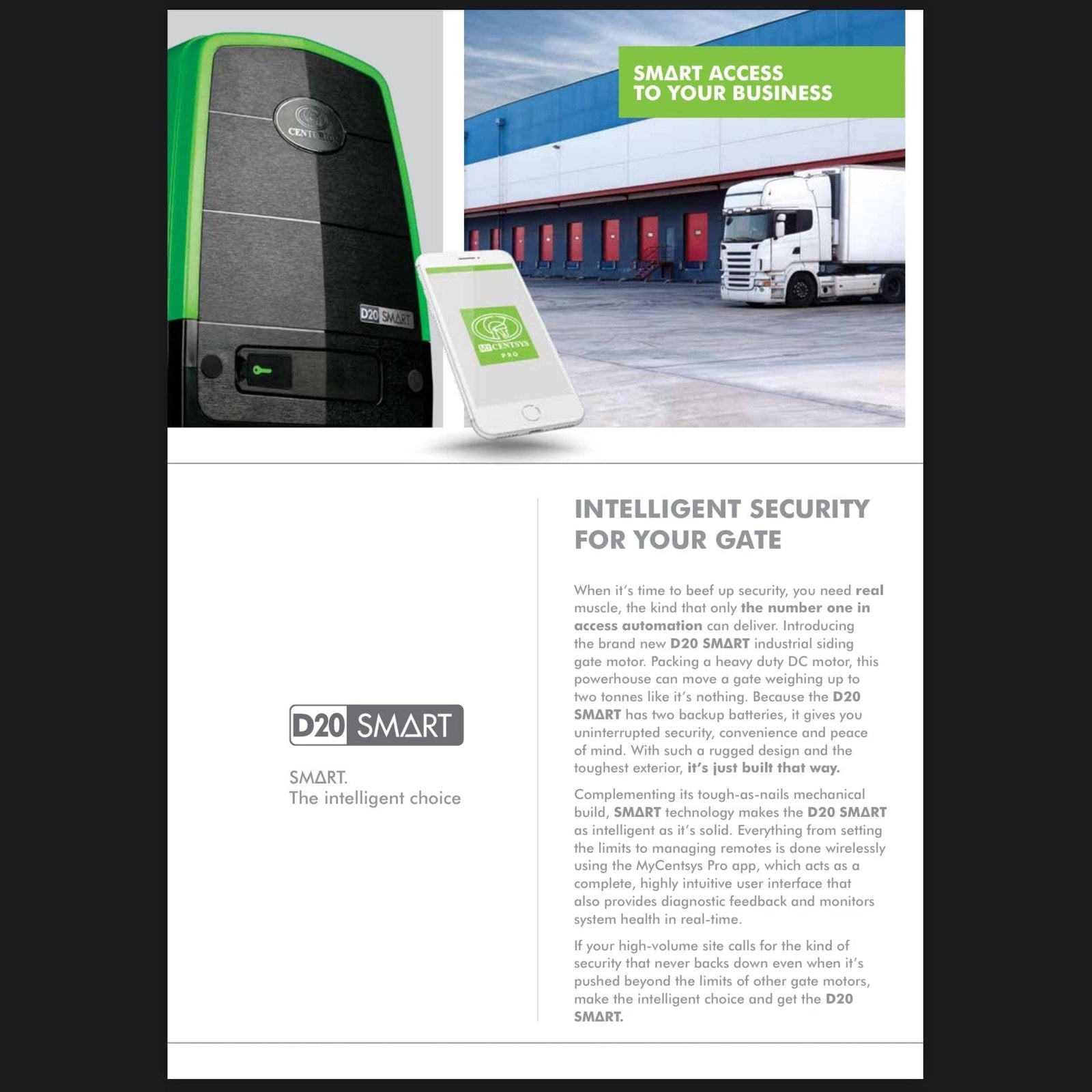 Elevate your security and convenience with the Centurion Sliding Gate Motor Kit D20 Smart 24VDC. Designed for heavy-duty applications, this robust motor kit supports gates weighing up to 2000kg, making it ideal for industrial sites, commercial properties, and large residential estates. The kit includes a powerful D20 Smart motor, a durable steel rack, and batteries, ensuring reliable operation even in the event of a power outage.