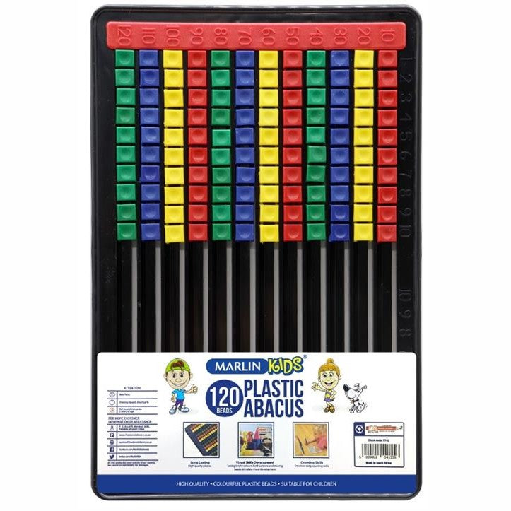 Marlin Kids Plastic Flat Board Abacus 120 Beads- Ideal For School Learners, Helps Develop Mathematical Skills, Numeracy, Counting, Fine Motor Skills, Retail Packaging, No Warranty