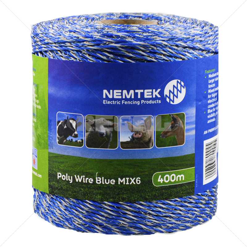 Enhance your agricultural fencing performance with the Nemtek Agri Poly Wire - Blue MIX6 - 400m. Designed for high conductivity and superior strength, this poly wire is ideal for electric fencing applications where maximum reliability and high visibility are essential.